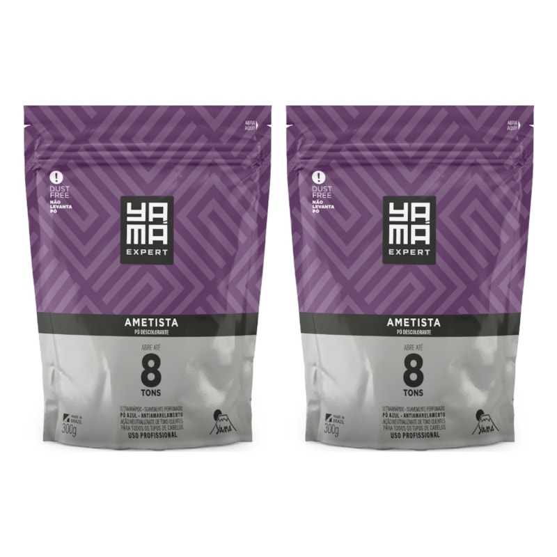 O Pó Descolorante Yamá Ametista é indicado para descolorir e neutralizar os tons dourados e acobreados da descoloração. Sua formulação inovadora é composta por uma mistura de pigmentos violetas e micropartículas de cristais de ametista, deixando o pó com tom Azul que neutraliza os tons quentes de dourado e cobre, minimizando o tom amarelado e melhorando o brilho dos cabelos. Abre até 8 Tons e não levanta pó durante a utilização, graças ao sistema Dust Free