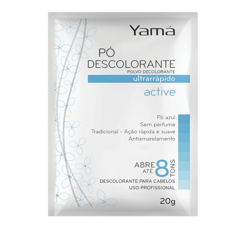 MODO DE USAR: Faça a prova de toque e teste de mecha para determinar o tempo de ação do produto. Em um recipiente não metálico, pese na proporção de 1:2, 20g de Pó Descolorante Yamá e 40ml de Água Oxigenada Oxicreme Yamá (10, 20, 30 ou 40 volumes) e misture até formar um creme homogêneo. Aplique a mistura sobre o cabelo seco nas áreas a serem descoloridas e aguarde o tempo de pausa conforme o resultado obtido no teste de mecha. Enxágue em seguida e aplique um shampoo até a completa remoção dos resíduos. Condicione. PARA RETOQUE DE RAÍZES: seguir as recomendações acima e aplicar apenas nas áreas de crescimento dos fios. Não aplique nas áreas já descoloridas anteriormente. Evite o contato com o couro cabeludo. PROVA DE TOQUE: prepare um pouco deste produto como se fosse utilizá-lo. Aplique uma pequena quantidade no antebraço ou atrás da orelha. Lave o local após 30 minutos. Aguarde 24 horas e se neste período, surgir irritação, coceira ou ardência na pele, fica provada a hipersensibilidade da pessoa ao produto e, portanto, não deve ser utilizado. TESTE DE MECHA: O teste serve para verificar se existe incompatibilidade ou sensibilidade química ao produto, verificar o tempo que depende do grau de clareamento desejado, da estrutura do cabelo, da sua cor base, da volumagem da Água Oxigenada Oxicreme Yamá (10, 20, 30 ou 40 volumes) que poderá ocasionar variações na abertura de tons, quanto maior a volumagem da Água Oxigenada maior a abertura de tons obtida pelo profissional. Aplique em uma mecha seguindo o modo de usar e verifique o grau de clareamento a cada 5 minutos. Não ultrapasse 50 minutos. Enxágue com água e seque-a. Caso ocorra quebra, ressecamento ou fique "elástico", não deve ser utilizado, pois o cabelo não tem condições de ser descolorido.