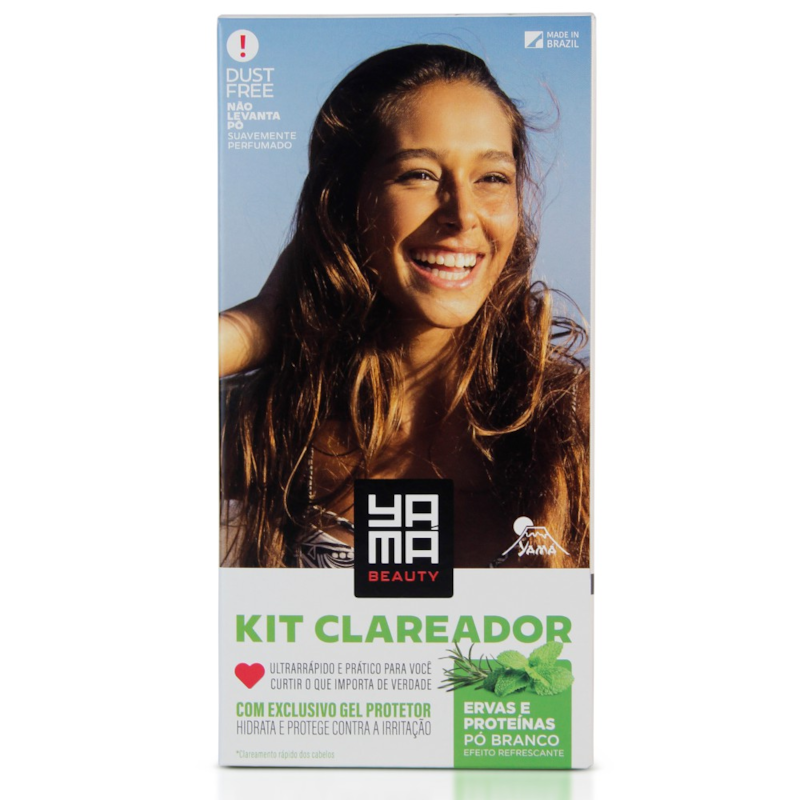 01 unidade de Yamá Pó Descolorante Ervas e Proteínas 20g: INGREDIENTES (português): SILICATO DE SÓDIO, PERSULFATO DE AMÔNIO, TALCO, PETROLATO LÍQUIDO, DIÓXIDO DE SILÍCIO, PERSULFATO DE POTÁSSIO, CARMELOSE SÓDICA, HIETELOSE, CAULIN, SILICATO DE MAGNÉSIO ALUMÍNIO, LAURILSULFATO DE SÓDIO, EDETATO DE SÓDIO, PERFUME, EXTRATO DO FRUTO DE PIMPINELLA ANISUM, EXTRATO DA FOLHA DE ROSMARINUS OFFICINALIS, SEDA HIDROLISADA. 01 unidade de Água Oxigenada Cremosa Yamá 30 volumes 60ml: INGREDIENTES: ÁGUA, ÁLCOOL CETOESTEARÍLICO, PERÓXIDO DE HIDROGÊNIO, CETOMACROGOL 1000, PENTETATO PENTASSÓDICO, FENACETINA, ERITORBATO DE SÓDIO, ÁCIDO FOSFÓRICO, PERFUME, MACROGOL, GLICOLATO DE SÓDIO, HIDRÓXIDO DE SÓDIO, ÁCIDO NITRILOTRIACÉTICO TRISSÓDICO, ÓLEO DE GIRASSOL, ÓLEO DE MILHO, ÓLEO DE GERGELIM, ÓLEO DA SEMENTE DE MACADAMIA INTEGRIFOLIA, ÓLEO DE OLIVA, T-BUTILIDROQUINONA. 01 sachê de Gel Protetor Multifuncional 15ml: INGREDIENTES (português): ÁGUA, CETEARETE-20, COCOATO DE GLICERILA PEG-7, GLICEROL, PARAFINA LÍQUIDA, FENOXIETANOL, ÓLEO DE COCO, PERFUME, SALICILATO DE BENZILA, LIMONENO, HEXIL CINAMAL, BUTIL-HIDROXITOLUENO, METILCLOROISOTIAZOLINONA, METILISOTIAZOLINONA, PANTENOL, EXTRATO DE FLOR DE CAMOMILA, ÓLEO DE SOJA, BENZOATO DE SÓDIO, SORBATO DE POTÁSSIO.